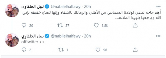 كما دعا الحلفاوي للاعبين المصابين بفيروس كورونا من الاهلي والزمالك وقال :" أهم حاجة ندعي لولادنا المصابين من الأهلي والزمالك بالشفاء وإنها تعدي خفيفة بإذن الله ويرجعوا ينوروا الملاعب".