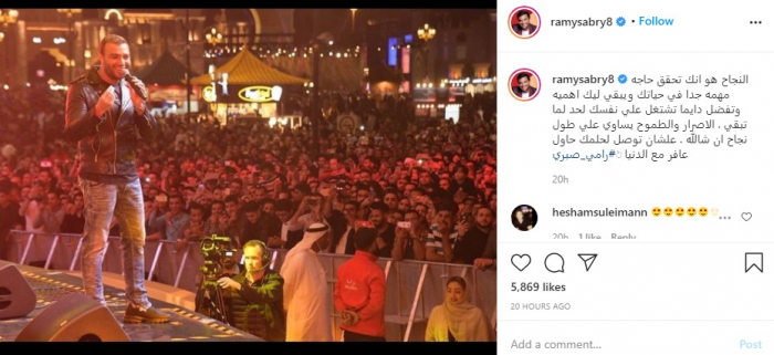 وجه الفنان رامي صبري، نصيحة لجمهوره، بصورة من إحدى حفلاته الغنائية، نشرها عبر حسابه الرسمي بموقع إنستجرام.