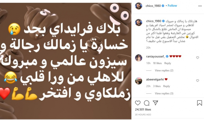 وكتب شيكو، عبر حسابه على موقع "إنستجرام": "بلاك فرايدي بجد.. خسارة يا زمالك رجالة وسيزون عالمي، ومبروك للأهلي من ورا قلبي، زملكاوي وأفتخر".