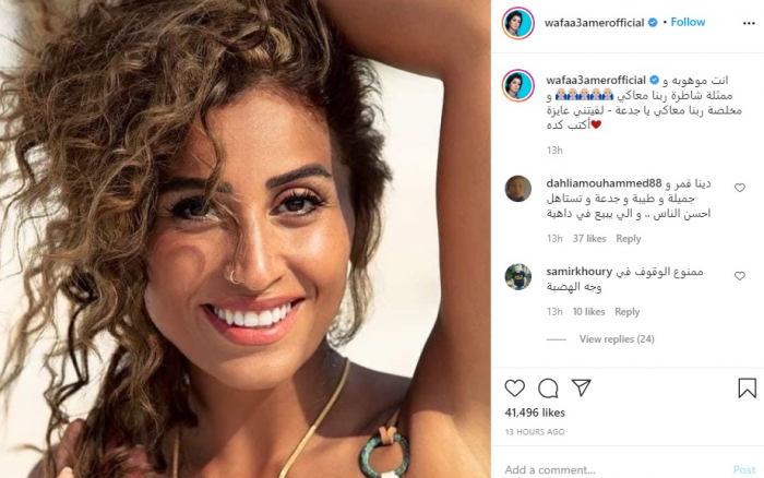 ونشرت وفاء صورة للفنانة دينا الشربيني، عبر حسابها الرسمي بموقع "إنستجرام"، علقت :"أنت موهوبة وممثلة شاطرة، ربنا معاكي، مخلصة، ربنا معاكي يا جدعة، لقيتني عايزة أكتب كده".