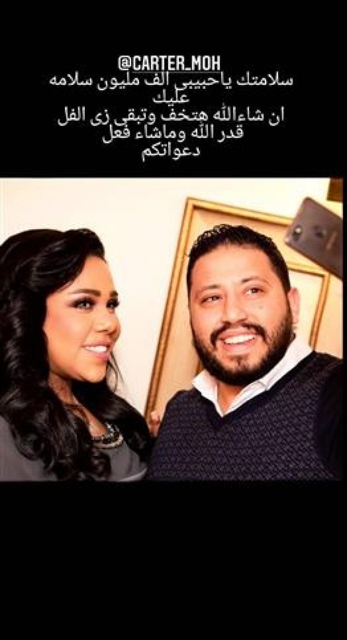 ونشرت الفنانة شيماء سيف زوجة محمد كارتر صورة تجمعهما، عبر خاصية "القصص القصيرة"، على حسابها بموقع "إنستجرام"، كتبت عليها :" "سلامتك يا حبيبي ألف مليون سلامة عليك.. إن شاء الله هتخف وتبقى زي الفل.. قدر الله وماشاء فعل.. دعواتكم".