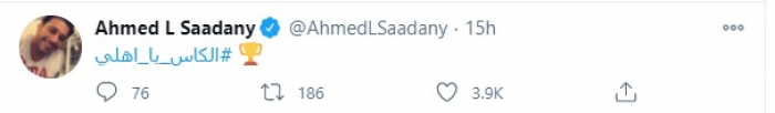 وحرص السعدني، على تفعيل هاشتاج عبر حسابه على تويتر، وعلق: "الكأس يا أهلي".