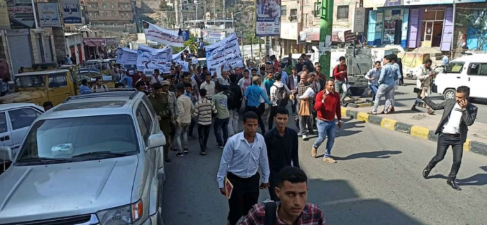 مسيرة طلابية تدعو لمحاكمة قتلة مرافق رئيس جامعة تعز