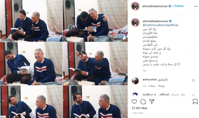هنأ الفنان أحمد حاتم، الفنان محمود حميدة بعيد ميلاده، الموافق 7 ديسمبر الجاري.