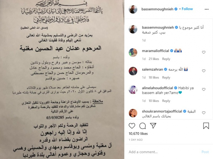أول تعليق لـ باسم مغنية بعد وفاة والده