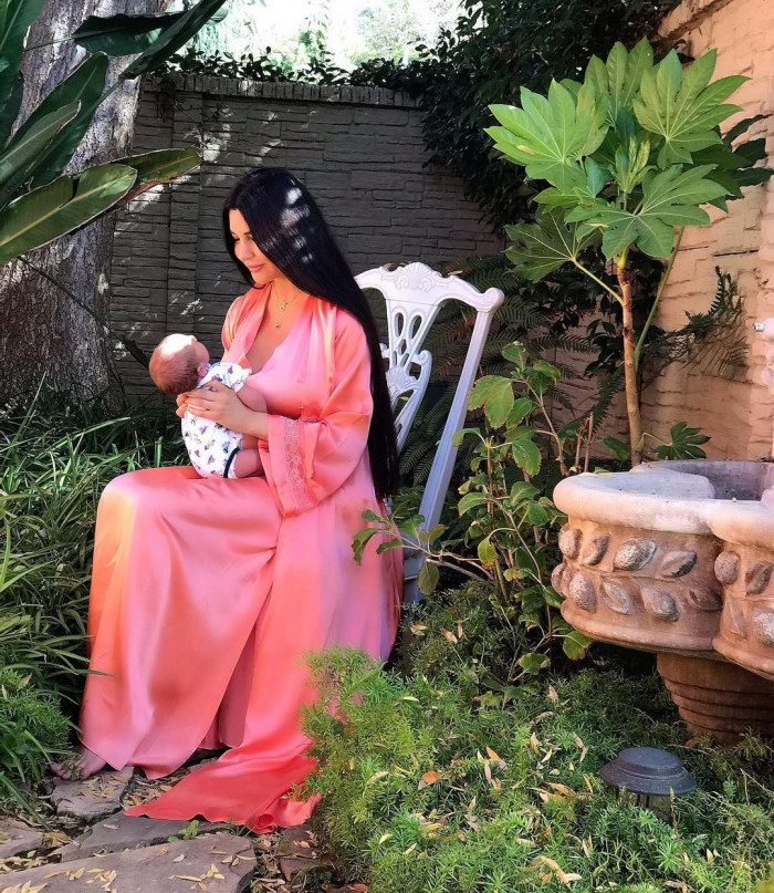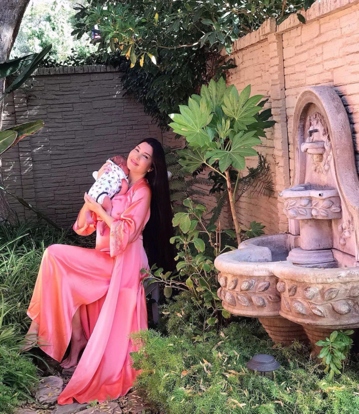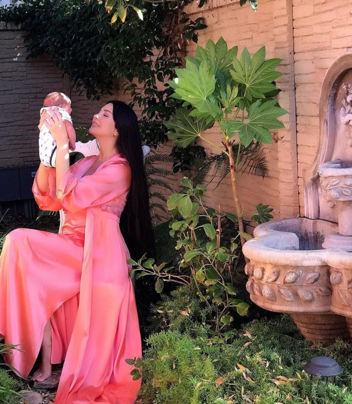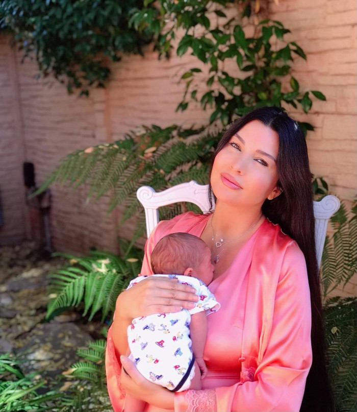 وظهرت "لاميتا"، في الصور عبر حسابها ب،"إنستجرام"، وهي تحتضن طفلها في حديقة منزلها.