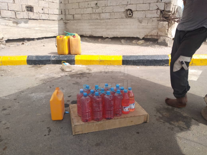 وشوهد العديد من الباعة وهم يفترشون الشوارع لبيع البترول بأسعار مرتفعة، حيث وصل سعر الدبة الـ 20 لترًا إلى 10 آلاف ريال.