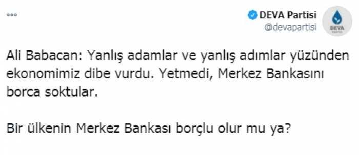 هاجم رئيس حزب الديمقراطية والتقدم التركي، علي باباجان، سياسة أردوغان الاقتصادية، التي أدت استدانة البنك المركزي التركي.