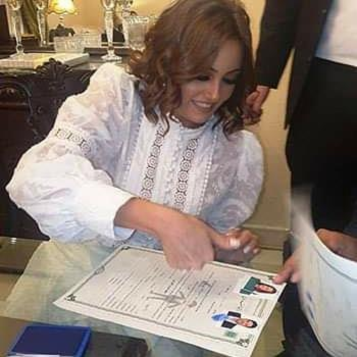 الصور الأولى لعقد قران بشرى من صديق طفولتها