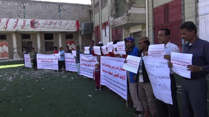 ودعوا المجتمع الدولي – عبر لافتات – إلى التدخل لكبح الاعتداءات الوحشية للمليشيات الحوثية، على المدنيين.