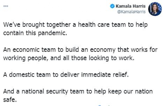 نائبة الرئيس الأمريكي المنتخب: تشكيل فرق صحية واقتصادية وإغاثية