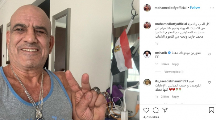 ونشر "لطفي" صورة له من الإمارات، عبر حسابه على إنستجرام، وعلق: "كل الحب والتحية من الإمارات الحبيبة .. بصور هنا فيلم عن مصارعة المحترفين مع المخرج المتميز محمد حارب ونخبة من النجوم الشباب".