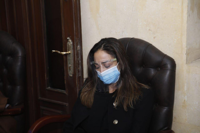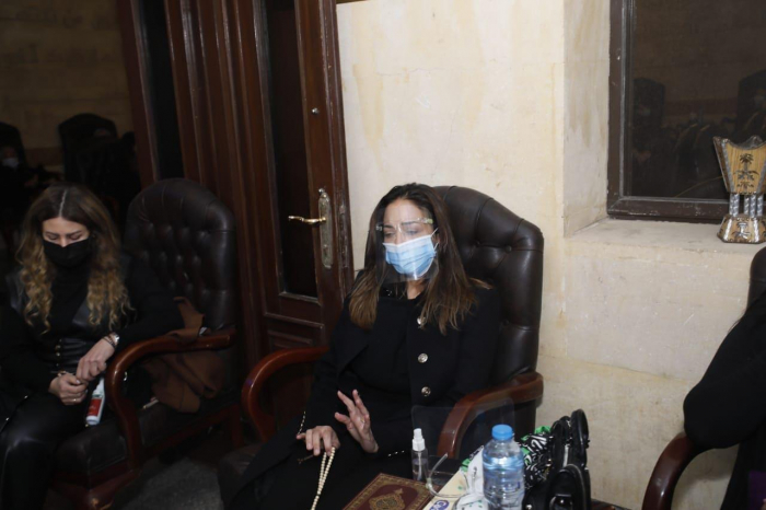 انهارت الفنانة داليا البحيري، بالبكاء في عزاء والدها الراحل المهندس محمود البحيري، بمسجد حسن الشربتلي بالتجمع الخامس.
