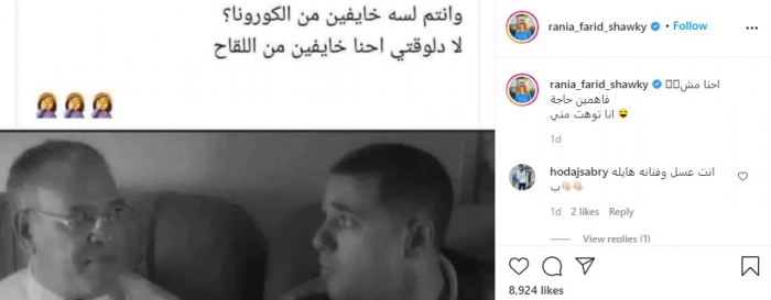 نشرت رانيا صورة كوميدية، عبر حسابها بموقع "إنستجرام"، مكتوب عليها: "وانتم لسه خايفين من الكورونا، لا دلوقتي احنا خايفين من اللقاح".