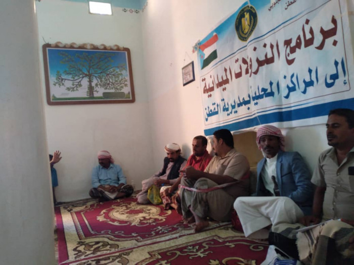 زارت القيادة المحلية للمجلس الانتقالي الجنوبي في مديرية القطن بمحافظة حضرموت، يوم الثلاثاء، مركز غصيص، ضمن جولاتها الميدانية لتعزيز العلاقة التشاركية بين المجلس والمجتمع.