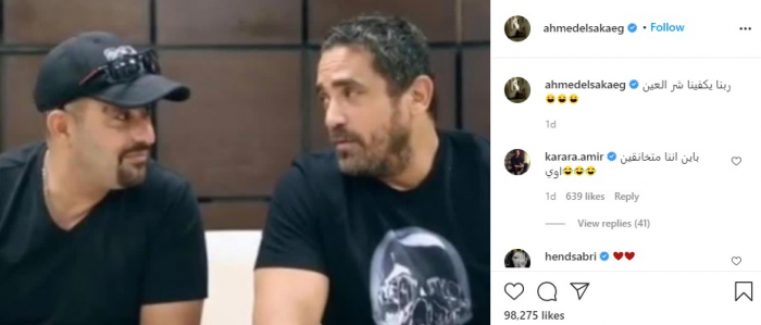 نشر الفنان أحمد السقا صورة تجمعه بالفنان أمير كرارة، عبر حسابه الرسمي بموقع "إنستجرام".