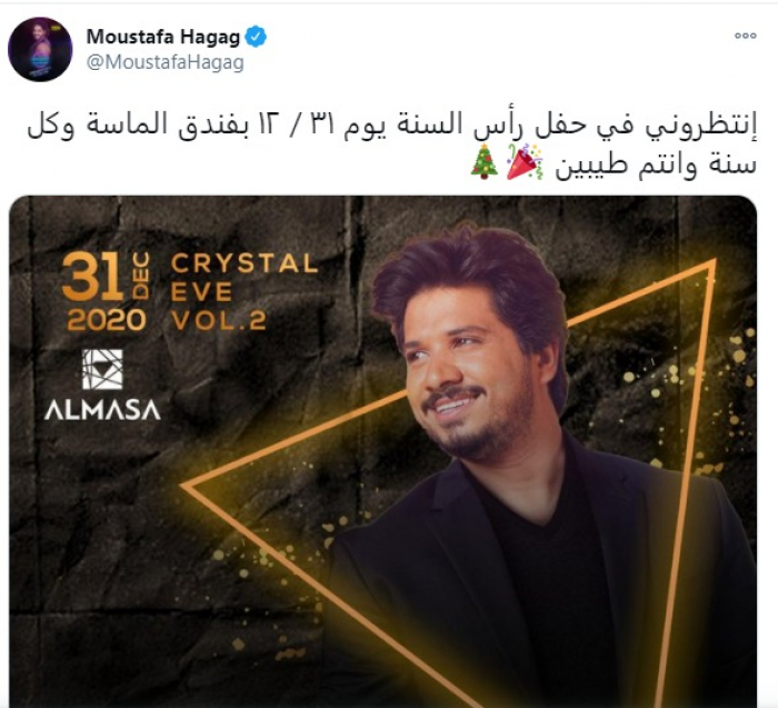 كشف الفنان المصري مصطفى حجاج، عن حفله الغنائي المقبل بموسم رأس السنة.