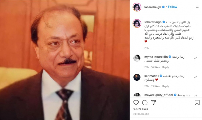 أحيت الفنانة سهر الصايغ، الذكرى الأولى لرحيل والدها، ونشرت صورة عبر حسابها الرسمي بموقع إنستجرام.