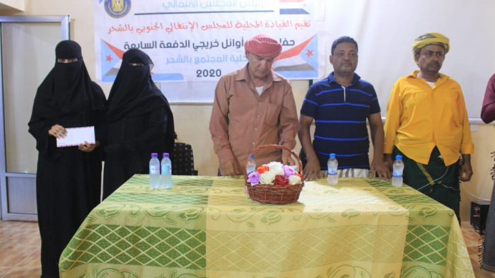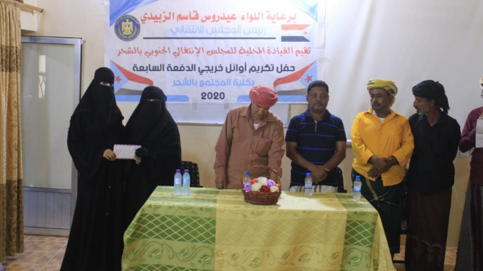 كرمت القيادة المحلية للمجلس الانتقالي الجنوبي في مديرية الشحر، مساء أمس الخميس، أوائل خريجات الدفعة السابعة بكلية المجتمع.
