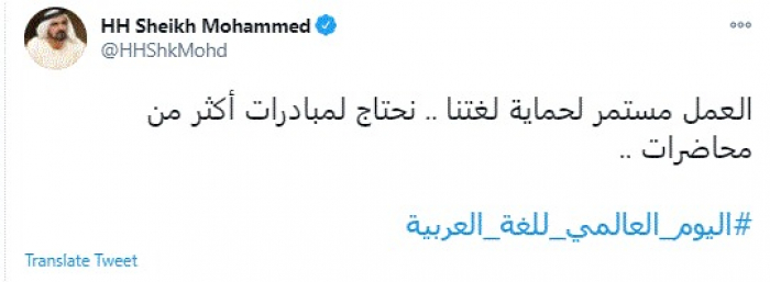 وقال في تغريدة عبر "تويتر" رصدها "المشهد العربي": "العمل مستمر لحماية لغتنا .. نحتاج لمبادرات أكثر من محاضرات.. اليوم العالمي للغة العربية".