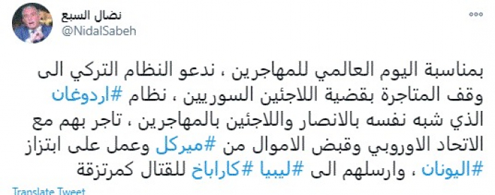 طالب المحلل السياسي اللبناني نضال السبع، اليوم، النظام التركي بوقف المتاجرة بورقة اللاجئين السوريين.