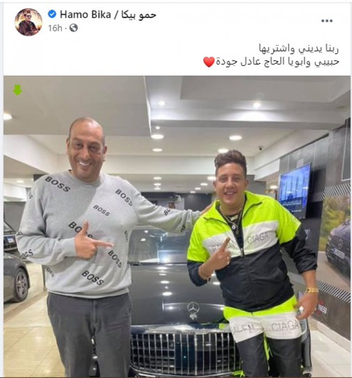 ونشر بيكا، عبر صفحته الرسمية على موقع "فيسبوك"، صورة له ومن خلفه السيارة، وعلّق: "يارب استرها علينا"، ووضع "إيموجي" العين الزرقاء خشية الحسد.