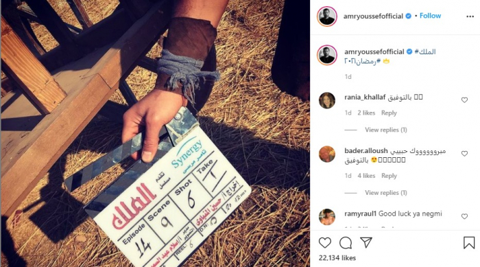 نشر "عمرو" صورة "كلاكيت" المسلسل، عبر حسابه الرسمي بموقع "إنستجرام"، علق: "الملك، رمضان 2021".