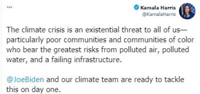 حذرت نائبة الرئيس الأمريكي المنتخب كامالا هاريس، من تداعيات أزمة التغير المناخي على المجتمعات الفقيرة.
