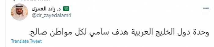 وقال في تغريدة عبر "تويتر" رصدها "المشهد العربي": "وحدة دول الخليج العربية هدف سامي لكل مواطن صالح".