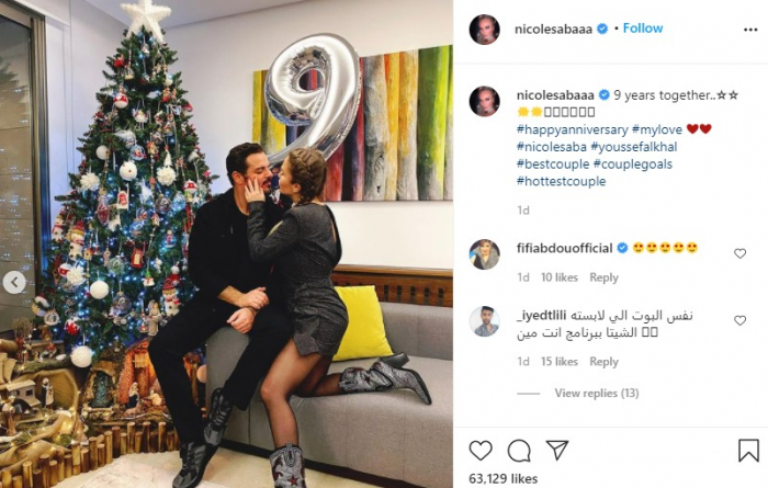 وظهرت نيكول والخال في الصور بإطلالات رومانسية وعلقت على الصور قائلة: "9 سنين مع بعض".