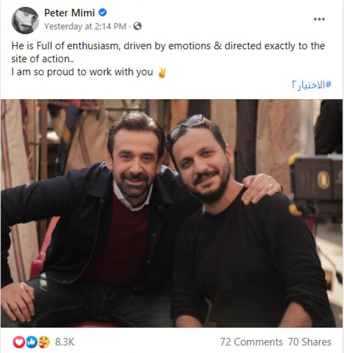 مع استمرار تصوير الاختيار 2.. بيتر ميمي لـ كريم عبد العزيز :فخور بالعمل معك