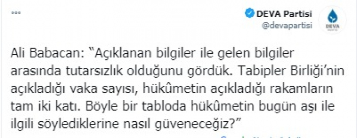 شكك رئيس حزب ديفا التركي المعارض، في أرقام الحكومة التركية حول إحصائيات تفشي فيروس كورونا.