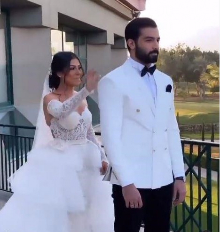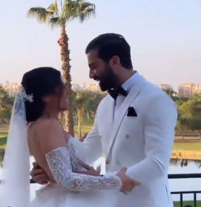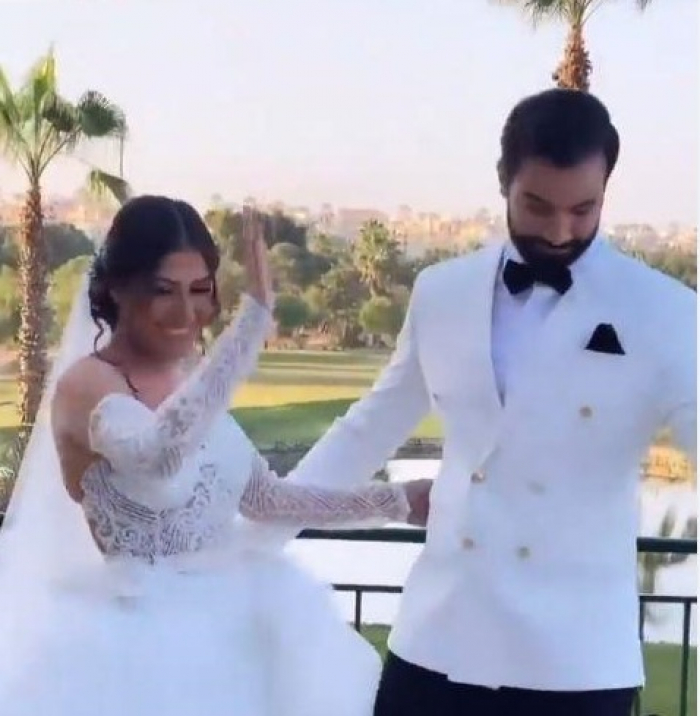 ونشر حساب برنامج "أراب وود" على موقع "إنستجرام"، فيديو ضم اللقطات الأولى من حفل الزفاف، ظهر فيها حازم قبل أن يرى زوجته لأول مرة في فستان الزفاف، ليعلق بعد رؤيتها "الله.. ايه الحلاوة دي، الحمد لله يا جماعة مطلعتش لابسة فستان منفوش"