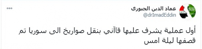 وقال في تغريدة عبر "تويتر" رصدها "المشهد العربي": "أول عملية يشرف عليها قاآني بنقل صواريخ إلى سوريا تم قصفها ليلة أمس".
