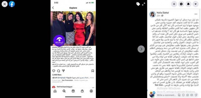ردًا على تصريحات الفنانة أصالة الأخيرة، علقت هالة العتال، طليقة المخرج طارق العريان الأولى، على المنشور الذي كتبته الفنانة أصالة، بعد انتشار صورته مع عارضة الأزياء السورية نيكول سعفان، والتي يتردد اسمها منذ فترة بالإشارة إلى وجود ارتباط يجمعها بطارق.