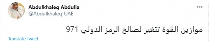 وكتب في تغريدة عبر "تويتر" رصدها "المشهد العربي": "موازين القوة تتغير لصالح الرمز الدولي 971".