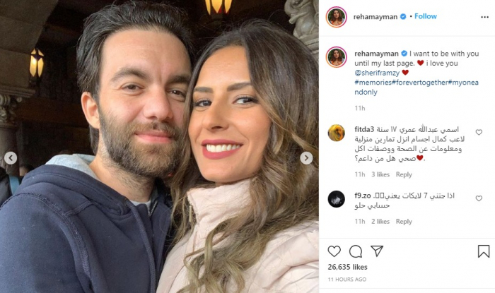 وجهت الفنانة ريهام أيمن رسالة رومانسية لزوجها الفنان شريف رمزي بعد إصابته بفيروس كورونا.