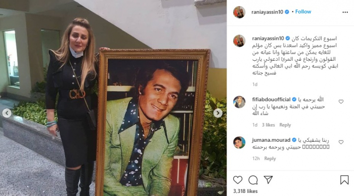 ونشرت "رانيا" صورا لها من تكريمات والدها عبر حسابها على موقع "إنستجرام"، وعلّقت: "أسبوع التكريمات كان أسبوع مميز، وأكيد أسعدنا بس كان مؤلم للغاية، يمكن من ساعتها وأنا عيانة من القولون وارتجاع في المرئ، ادعولي يا رب أبقى كويسة، رحم الله أبي الغالي وأسكنه فسيح جناته".