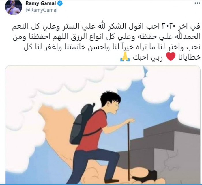 وكتب رامي، عبر حسابه على تويتر: "في آخر ٢٠٢٠ .. أحب أقول الشكر لله على الستر وعلى كل النعم .. الحمد لله على حفظه وعلى كل أنواع الرزق.. اللهم احفظنا ومن نحب وأختر لنا ما تراه خيرًا لنا وأحسن خاتمتنا وأغفر لنا كل خطايانا.. ربي أحبك".