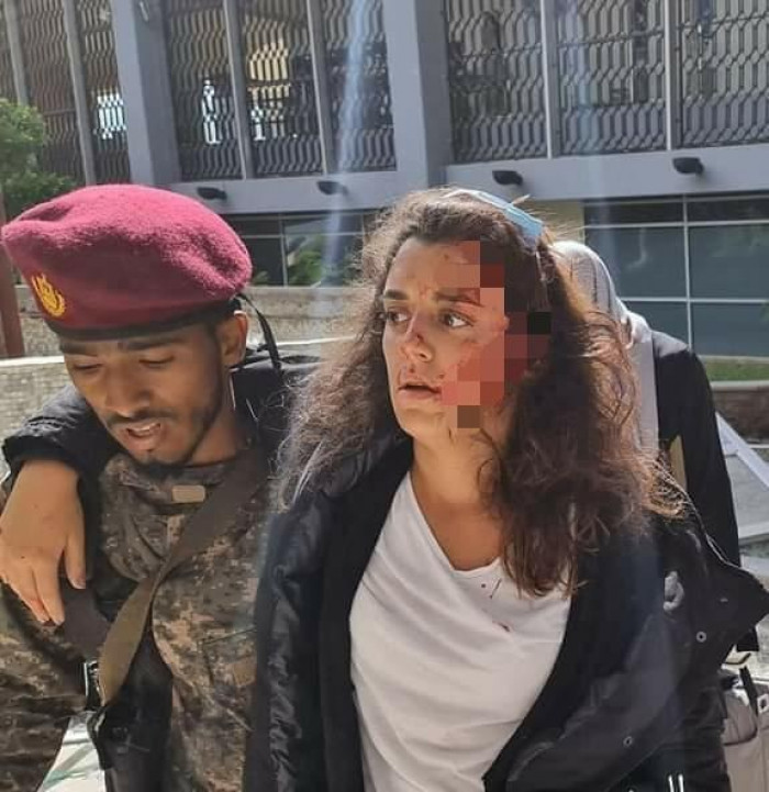 وضمت قائمة المُصابين في التفجيرات أيضًا، ممثلة الصليب الأحمر بالعاصمة عدن.