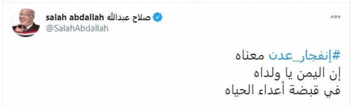 صلاح عبدالله يعلن تضامنه مع عدن بعد انفجار المطار