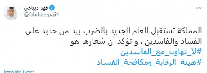 ديباجي: السعودية تستقبل العام الجديد بمحاربة الفساد والفاسدين