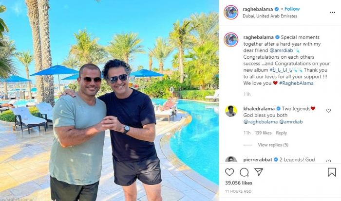حرص الفنان راغب علامة، على توجيه رسالة للفنان عمرو دياب، كما وجه الشكر لجمهوره.