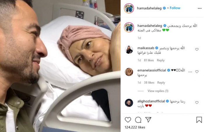 شارك الفنان حمادة هلال جمهوره ومتابعي حسابه الرسمي على موقع انستجرام، صورة تجمعه بوالدته، أثناء تواجدها في أحد المستشفيات على سرير المرض.