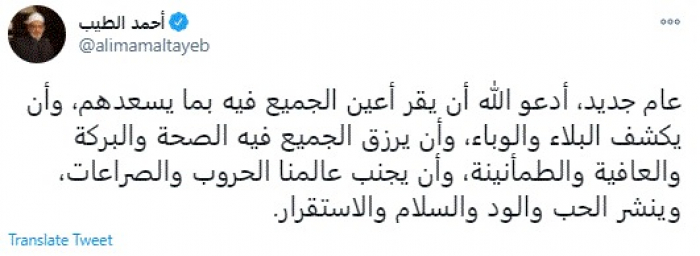 الطيب يُوجه رسالة للعالم بمناسبة العام الجديد