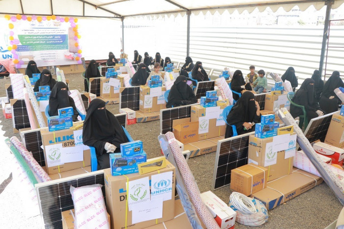 كشفت مفوضية اللاجئين عن دعمها للنازحات في إب، بآلات خياطة وأقمشة بعد تلقيهن التدريب على الحياكة.