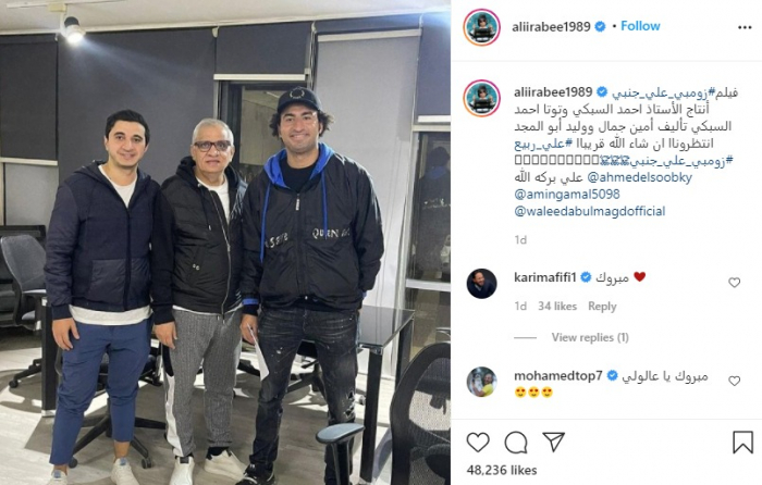 وعلق ربيع :فيلم "زومبي على جنبي"، إنتاج الأستاذ أحمد السبكي وتوتا أحمد السبكي، تأليف أمين جمال ووليد أبو المجد انتظرونا ان شاء الله، على بركة الله".