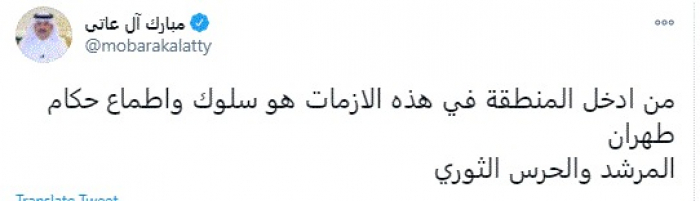 آل عاتي: أطماع الملالي أدخلت المنطقة في الأزمات