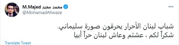 أشاد الكاتب الصحفي محمد مجيد الأحوازي، بشباب لبنان، جراء واقعة حرق صور قاسم سليماني.