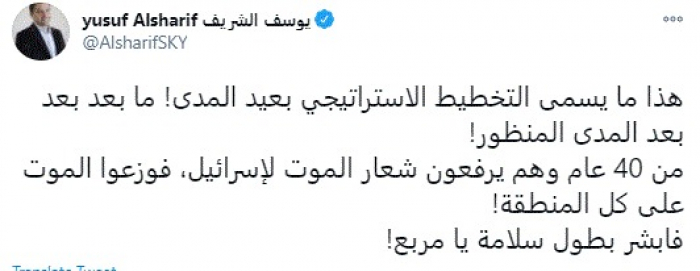 وقال في تغريدة عبر "تويتر" رصدها "المشهد العربي": "هذا ما يسمى التخطيط الاستراتيجي بعيد المدى! ما بعد بعد بعد المدى المنظور".